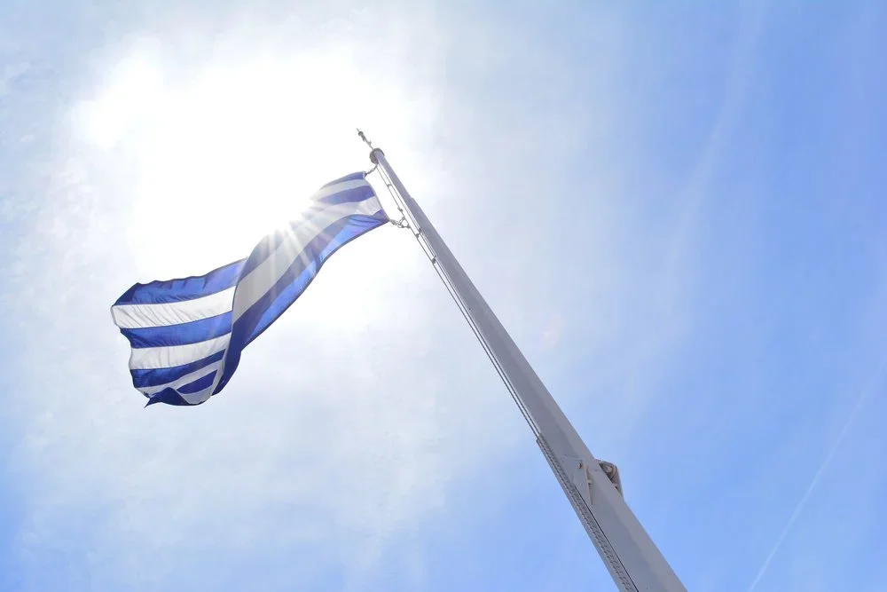 Stevie Paraskevopoulos, Photograph of the Greek flag at the Acropolis in Athens, Greece.